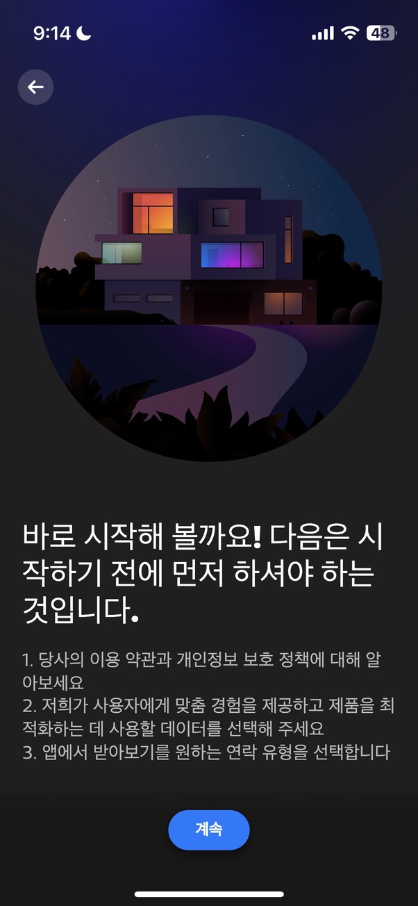 앱을 실행한 후, 개인정보 동의 설정 등을 거칩니다.