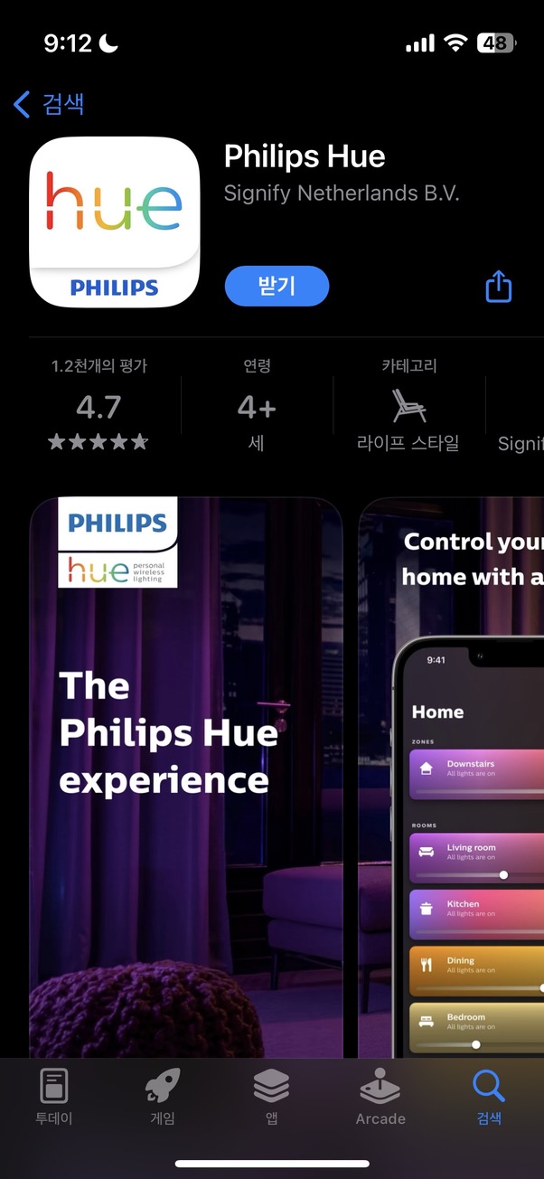 앱스토어에서 필립스 휴 어플을 다운 받습니다.