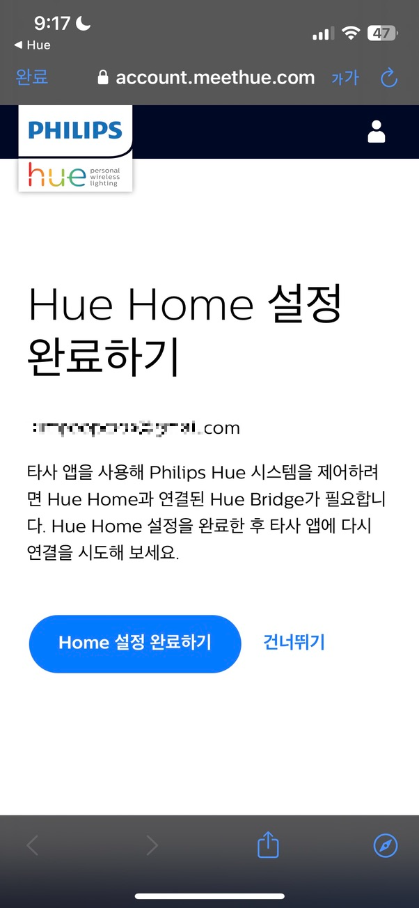 구글홈에서 연결을 시도했더니 휴 브릿지가 필요하다고 나오네요.