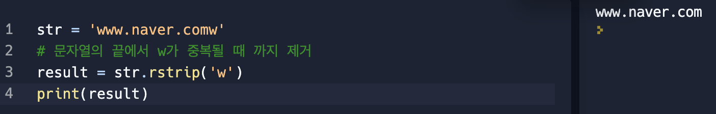 문자열의 끝에서 w를 제거하는 코드입니다.