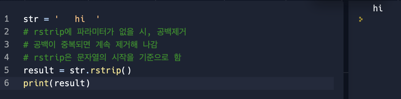 rstrip은 문자열의 끝을 기준으로 문자를 제거합니다. 비워져 있으면 공백을 제거합니다.