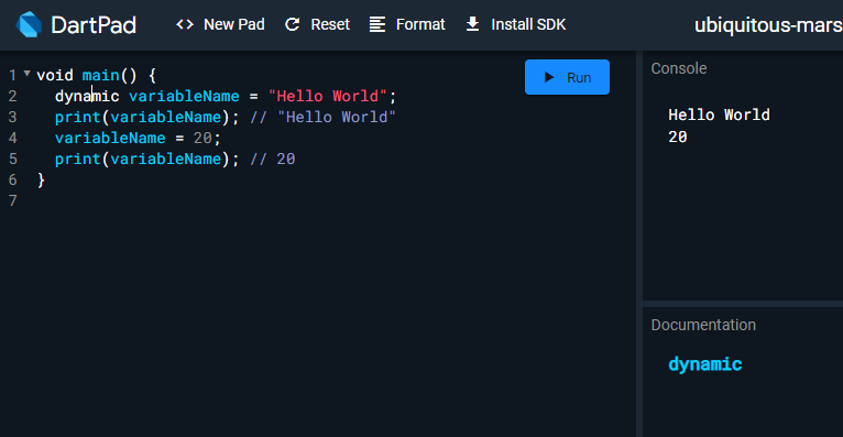 아래와 같이 dynamic 키워드를 사용하여 변수를 선언할 수 있습니다.