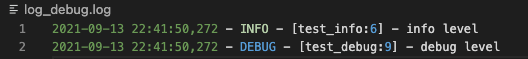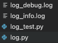 log_test.py를 실행하셨다면, 같은 위치에 log_debug.log, log_info.log 이 두개의 파일이 생성된 것을 볼 수 있습니다.