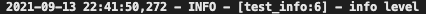 날짜 및 시간정보, log level, 함수 및 logger.info 가 선언된 line 정보, 담고 있는 메세지가 출력됩니다.