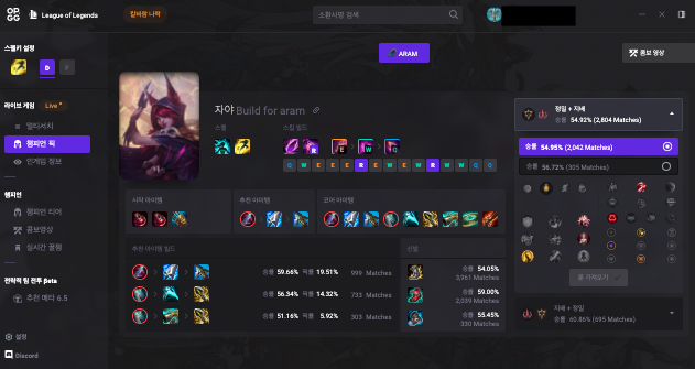 챔피언을 선택한 후 OP.GG를 확인하면 내가 선택한 챔피언에 대한 정보들을 확인할 수 있고, OP.GG에서 변경하는 사항에 따라 실제 롤 내에서 스펠 위치, 룬 등을 변경할 수 있습니다.