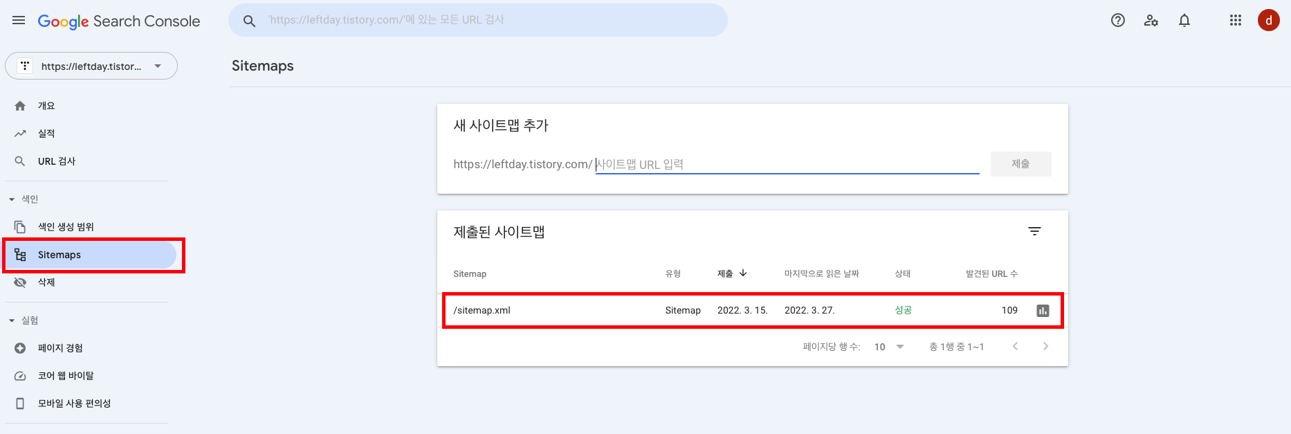 * 구글 서치콘솔은 주기적으로 sitemap을 탐색하여 색인을 생성하는데, 대략 3~4일에 한번정도로 파악됩니다.