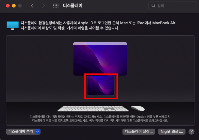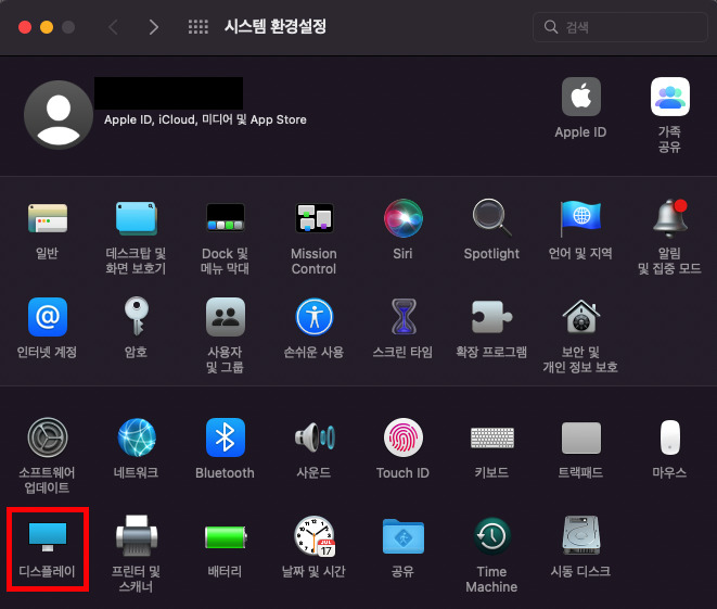 시스템 환경설정 - 디스플레이 로 이동합니다.