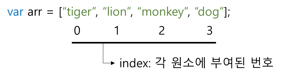 var arr2 = [1,2,3,4]; // 원소와 원소를 구분하기 위해 쉼표를 사용.