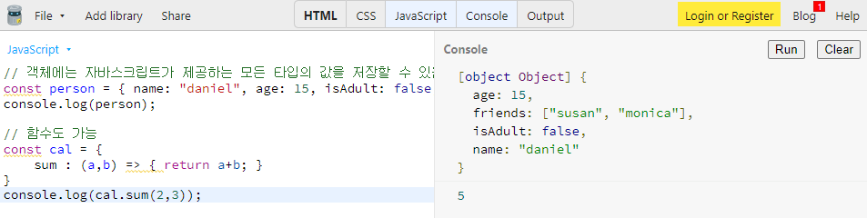 - 객체 선언(객체 리터럴)