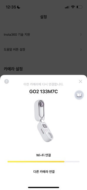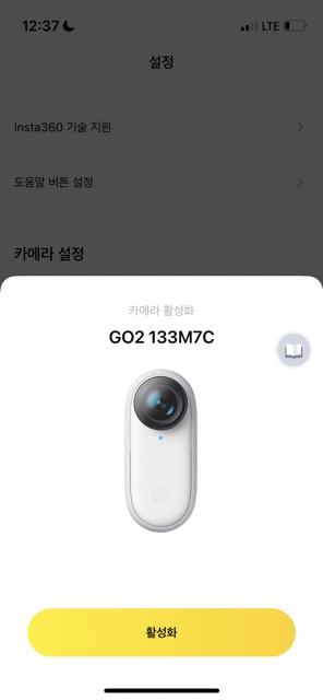 노란색 카메라모양을 누르면 주변에서 연결 가능한 카메라와 연결을 시도합니다. 연결이 되면 보증기간 시작과 함께 카메라가 활성화 됩니다.