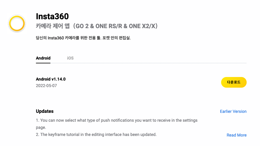 Insta360 GO 2 는 Insta360 앱으로 휴대폰에 연결하여 실시간으로 화면을 볼 수 있고, 카메라에 저장된 영상을 확인할 수 있으며, 카메라 설정 및 간단한 편집 또한 가능합니다.