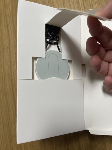카메라를 꺼내면 아래와 같이 포장되어 있습니다. 왼쪽 부분을 벗겨내면 자석 목걸이가 있습니다.