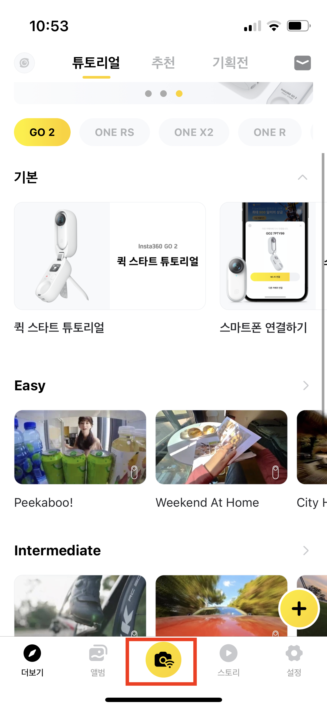 아래의 노란 카메라 모양을 누르면 카메라와 연결됩니다.