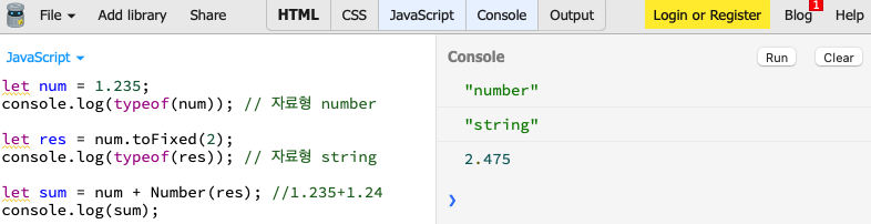 toFixed의 리턴값이 문자열인 점을 유의하시어 소수점 자리 및 반올림에 유용하게 쓰이길 바라겠습니다.