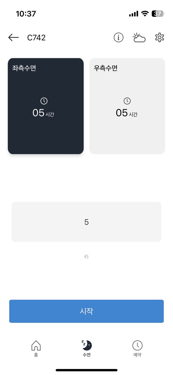 수면탭에서 좌우 별도로 조작할 수 있습니다.