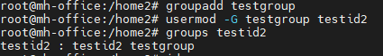 testid2 의 그룹이 잘 설정됐는지 확인해봅니다.