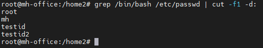 grep /bin/bash /etc/passwd | cut -f1 -d:
