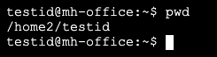 testid 로 접속했을 때 설정한 홈디렉토리에서 시작하는지 확인해봅시다. 새로 생성한 계정으로 접속한 후 pwd 명령어를 입력하면 현재 디렉토리의 경로가 보입니다.