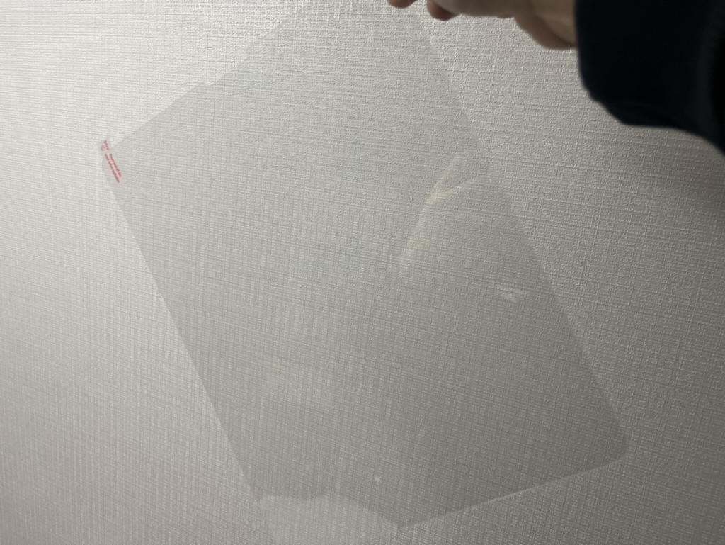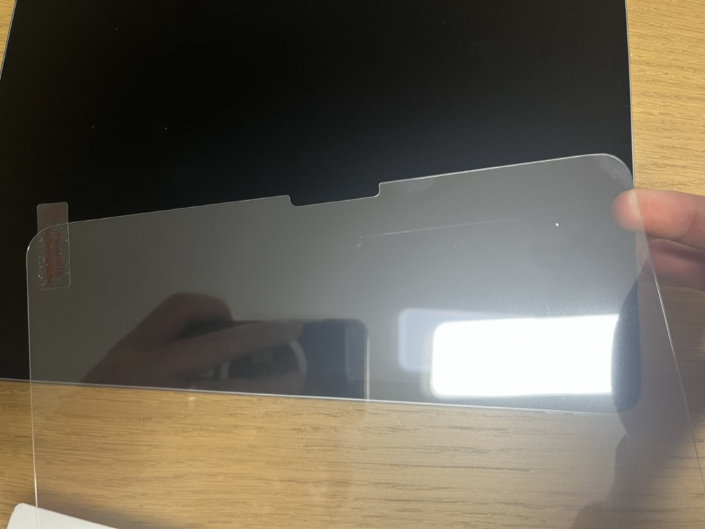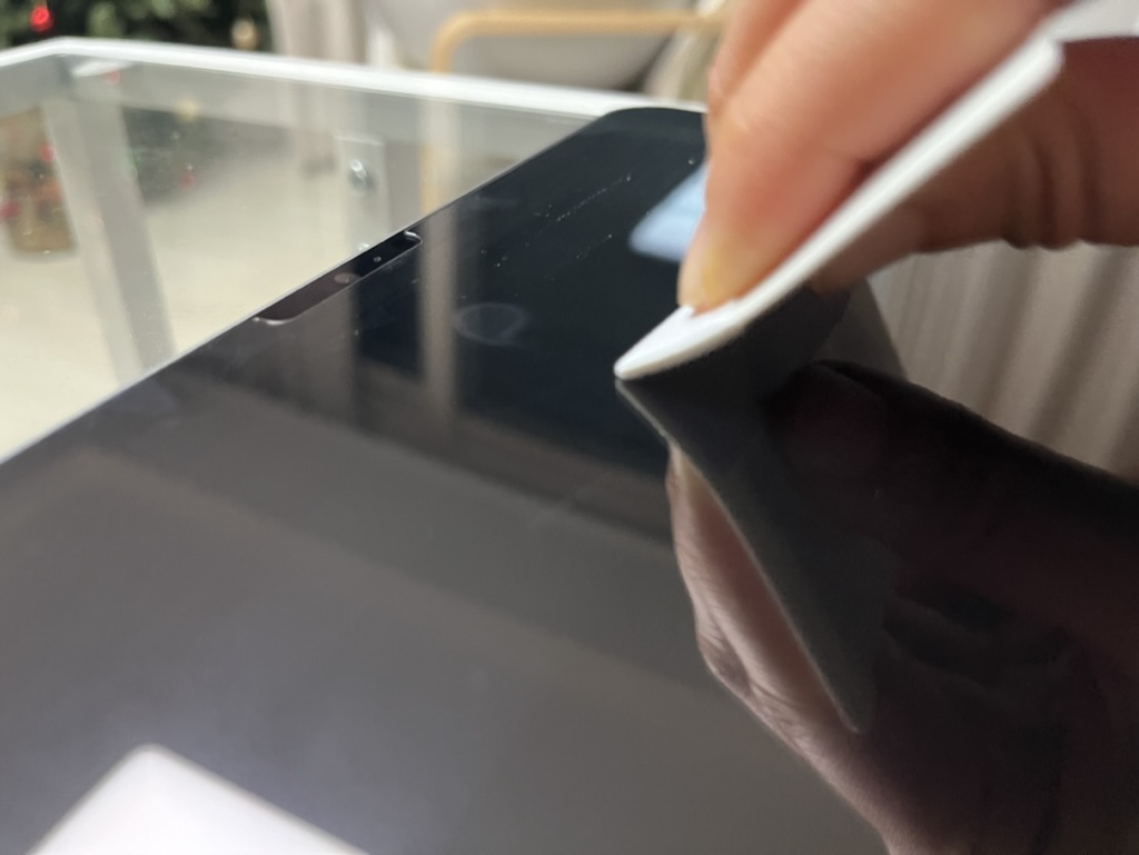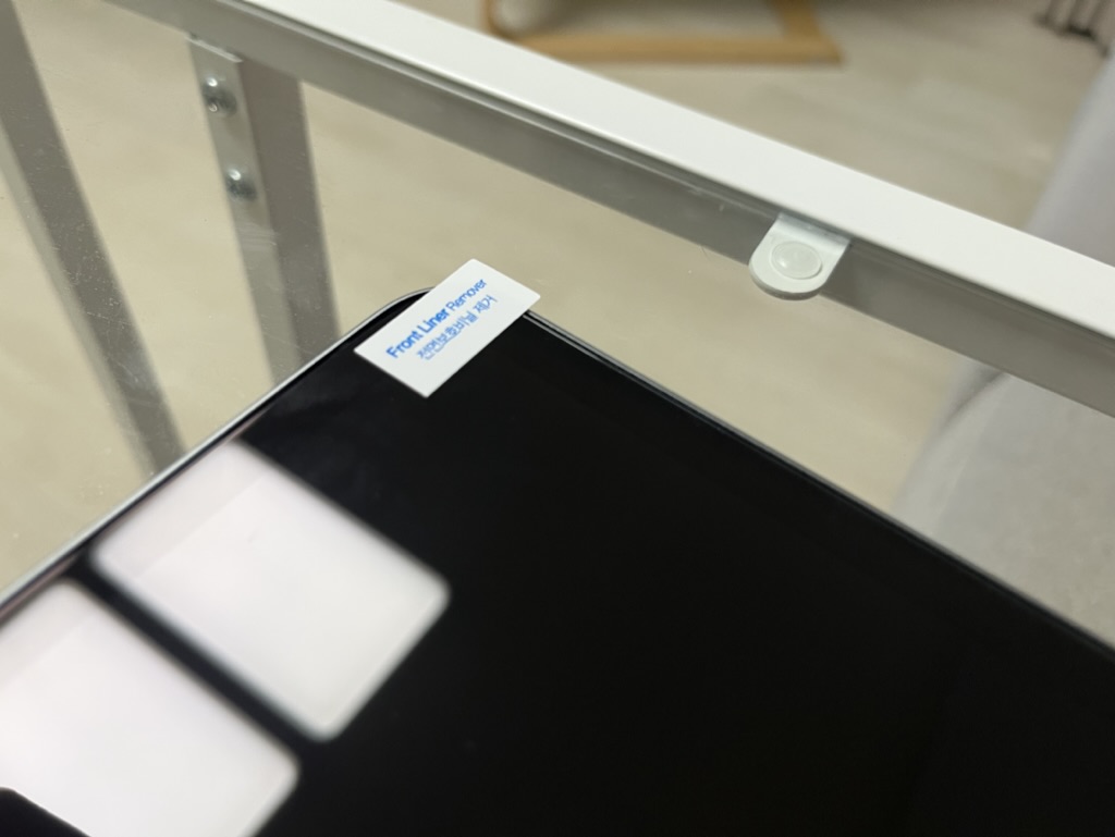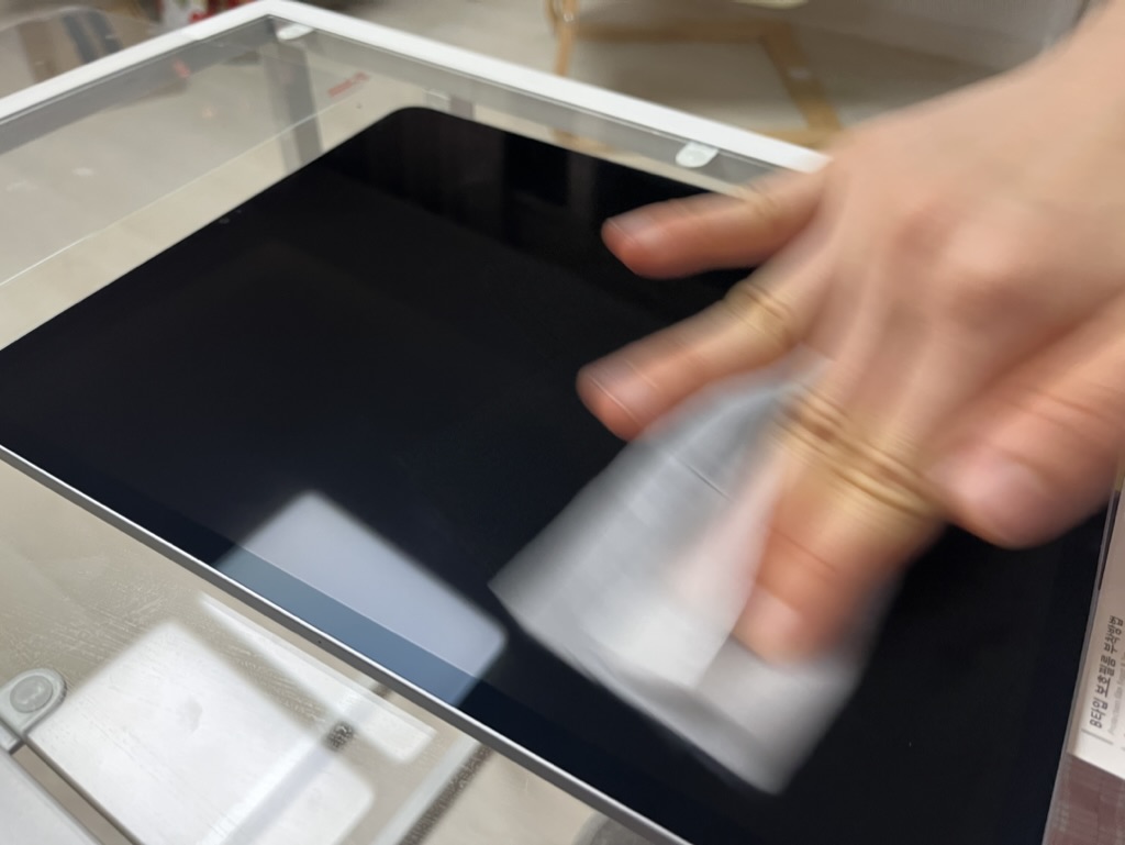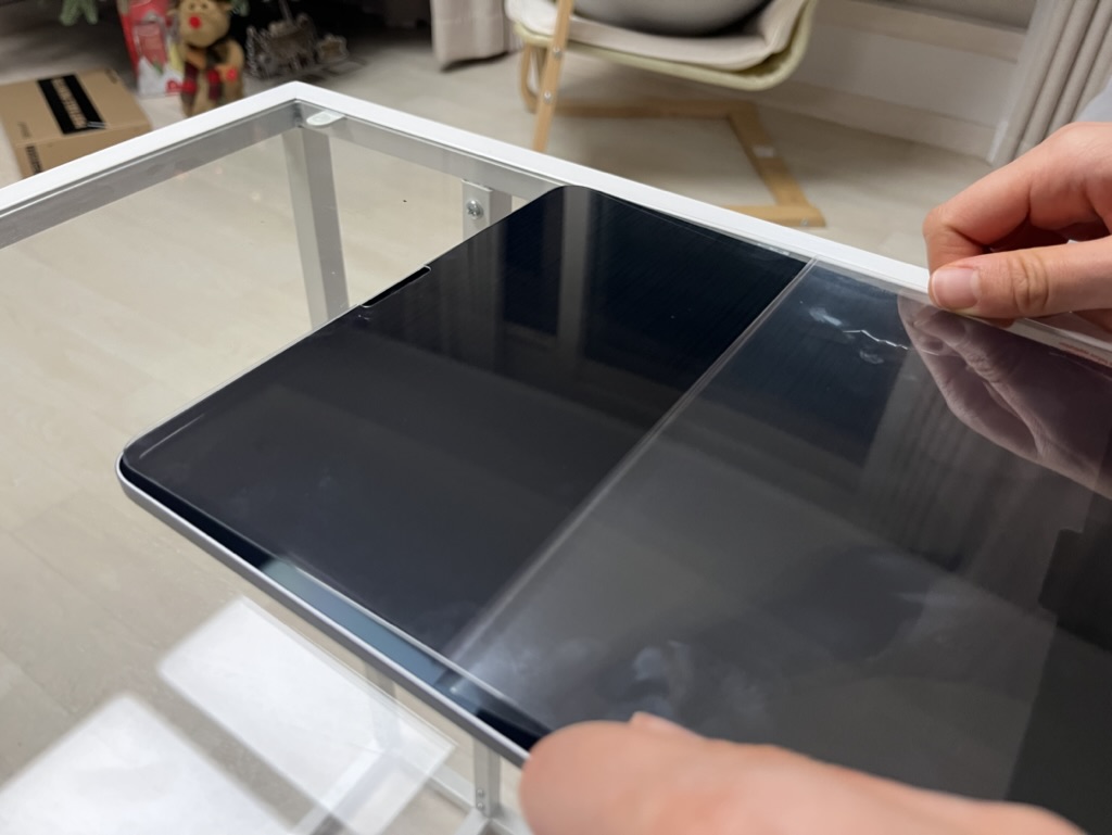 아이패드 위치를 잘 확인한 후, 기포가 발생하지 않도록 잘 붙여줍니다.