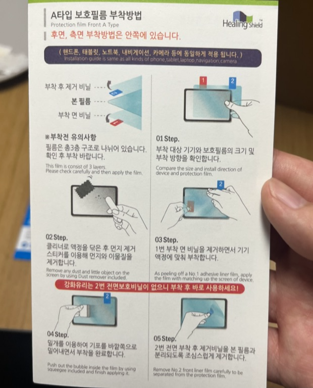 아이패드와 함께 액정보호필름 브랜드 중에서 유명한 힐링쉴드 강화유리를 샀습니다. 강화유리는 흡집에 강한 장점과 충격을 받았을 때 실제 액정 대신 강화 유리가 깨짐으로써 액정을 보호해주는 역학을 합니다.