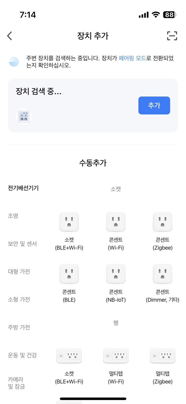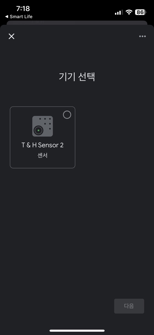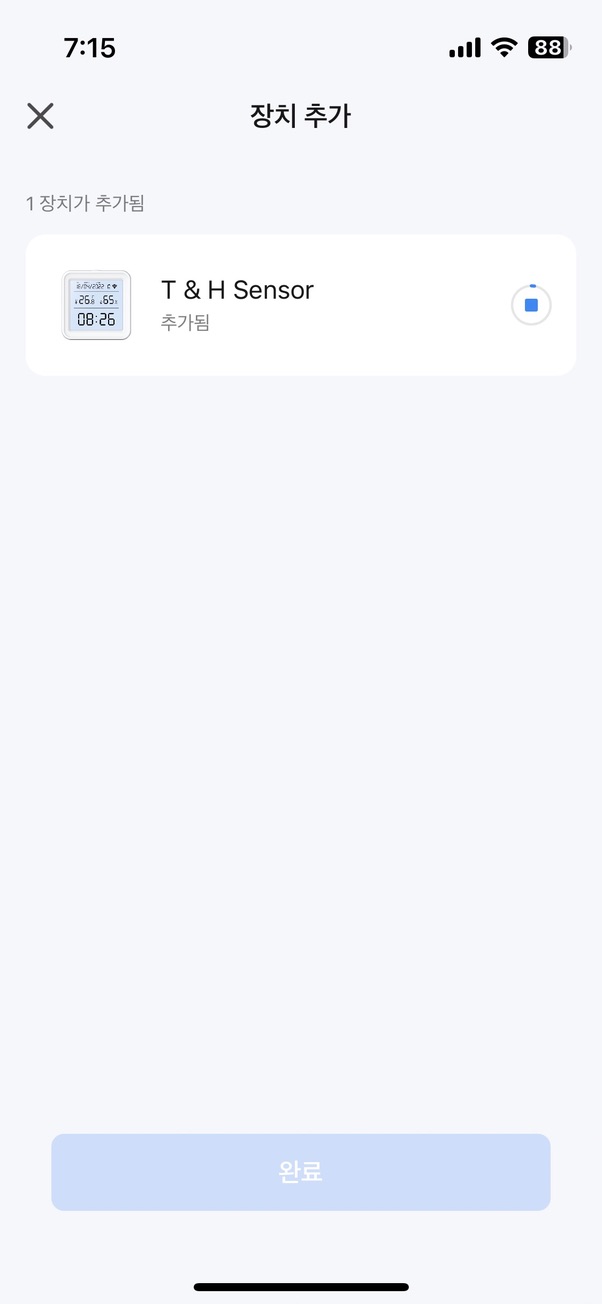 로그인 및 엑세스 등 설정을 완료하면 장치검색을 해줍니다. 온습도계에 건전지를 장착한 후, 기기는 자동으로 페어링 모드가 됩니다. 이후 장치에 연결할 기기가 검색됩니다.